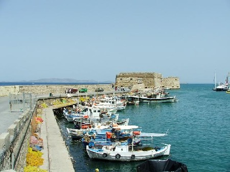 Hafen von Iraklion, der Hauptstadt von Kreta. Im Hintergrund die unvermeidliche venezianische Hafenfestung, die fast in jedem grösserem griechischen Hafen zu finden sind. Trotzdem jedesmal interessant, in den alten Gemäuern herumzusteigen.